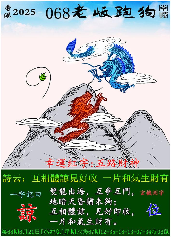 068期老版跑狗一字記之曰:【諒】 詩雲:互相體諒見好收,一片和氣生財有。