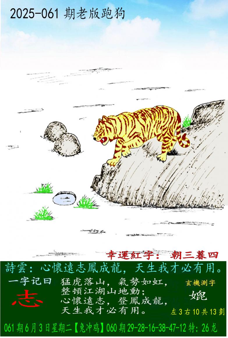 061期老版跑狗一字記之曰:【志】 詩雲:心懷遠志鳳成龍,天生我才必有用