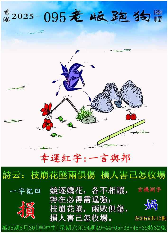 095期老版跑狗一字記之曰:【損】