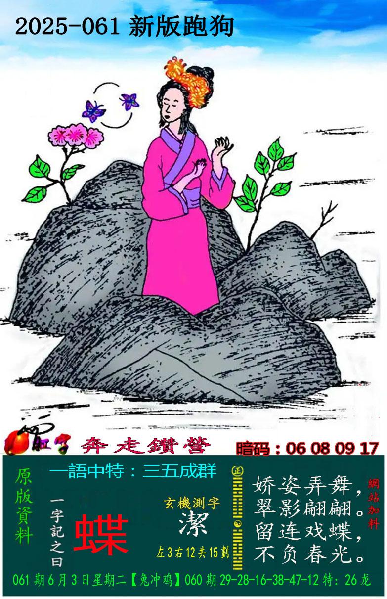 061期新版跑狗一字記之曰:【蝶】 玄機測字:《潔》 一語中特:三山五嶽
